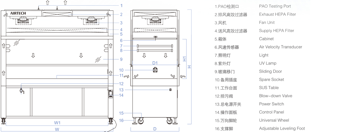 具有高效率、低能耗的風(fēng)量可調(diào)送風(fēng)系統(tǒng),LED照明和殺菌系統(tǒng)、移門(mén)和殺菌系統(tǒng)安全互鎖。
