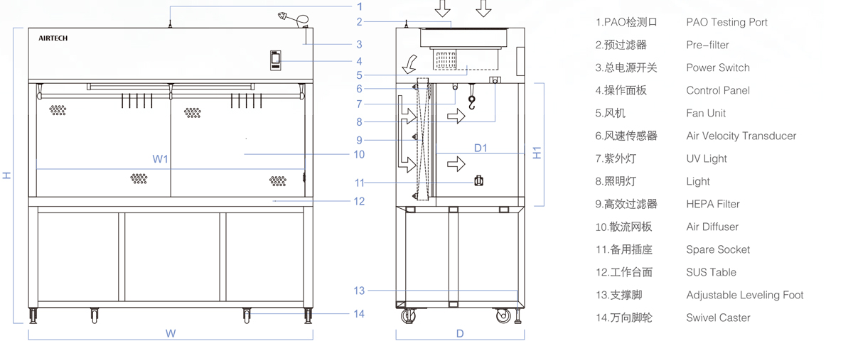 蘇凈安泰HS-1800H-U潔凈工作臺(PIVAS專用)產品特征