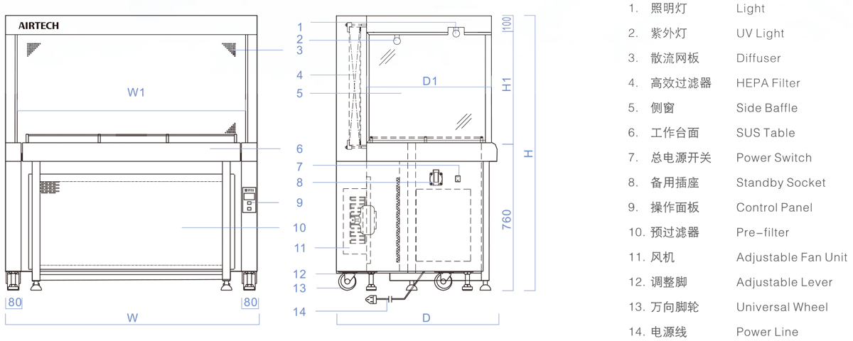 蘇凈安泰HT-1300-U分離型潔凈工作臺產品特征