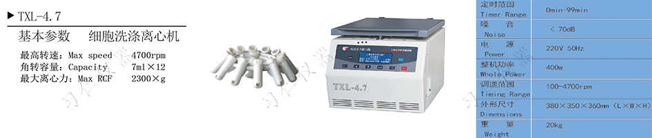 TXL-4.7細胞洗滌專業離心機,一鍵離心。