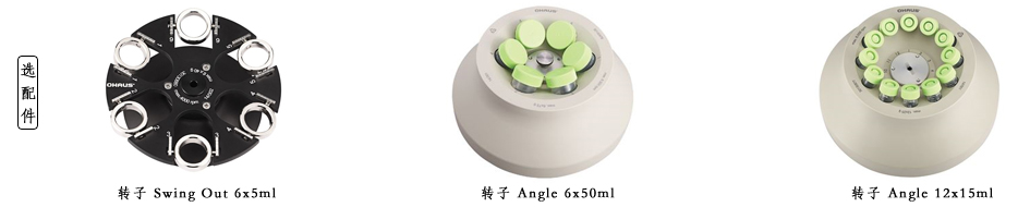 可適配的轉子:角轉子 12 x 15ml; 角轉子 6 x 50 ml; 水平轉子 6 x 5 ml