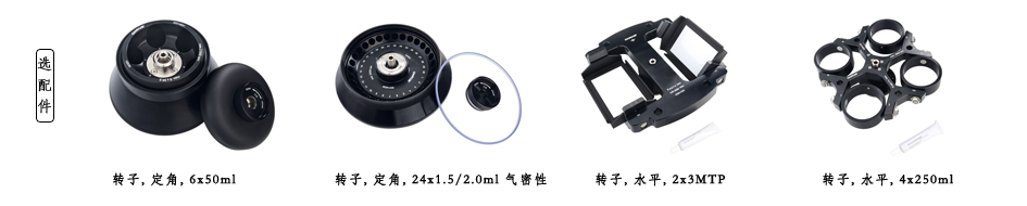 可適配的轉子:水平轉子 4 x 250 ml ID; 水平轉子 2 x 3MTP ID; 水平轉子 16 x 50 ml ID; 角轉子 6 x 250 ml FB ID; 角轉子 6 x 85 ml RB ID; 角轉子 4 x 85ml RB ID Hi; 角轉子 10 x 50 ml FA ID; 角轉子 6 x 50 ml RB ID Hi; 角轉子 30 x 15 ml RB/FA ID; 角轉子 20 x 10 ml RB ID Hi; 角轉子 44 x 1.5 / 2.0 ml ID; 氣密性角轉子 24 x 1.5 / 2.0 ml ID; 角轉子 24 x 1.5 / 2.0 ml ID