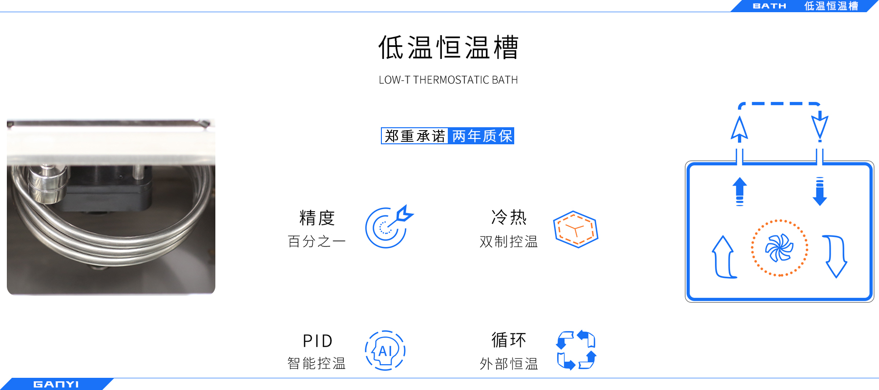 循環(huán)控制:具有內(nèi)、外循環(huán),外循環(huán)時可以將槽(箱)內(nèi)恒溫液體外引,可建立第二恒溫場。