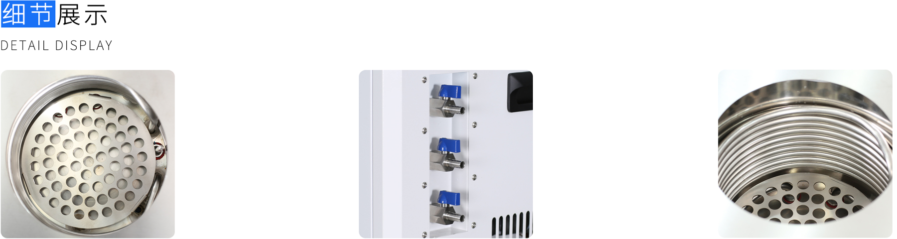 泵體循環(huán):采用304不銹鋼泵頭具有防低溫腐蝕,外循環(huán)時可以將槽(箱)內(nèi)恒溫液體外引,可建立第二恒溫場。