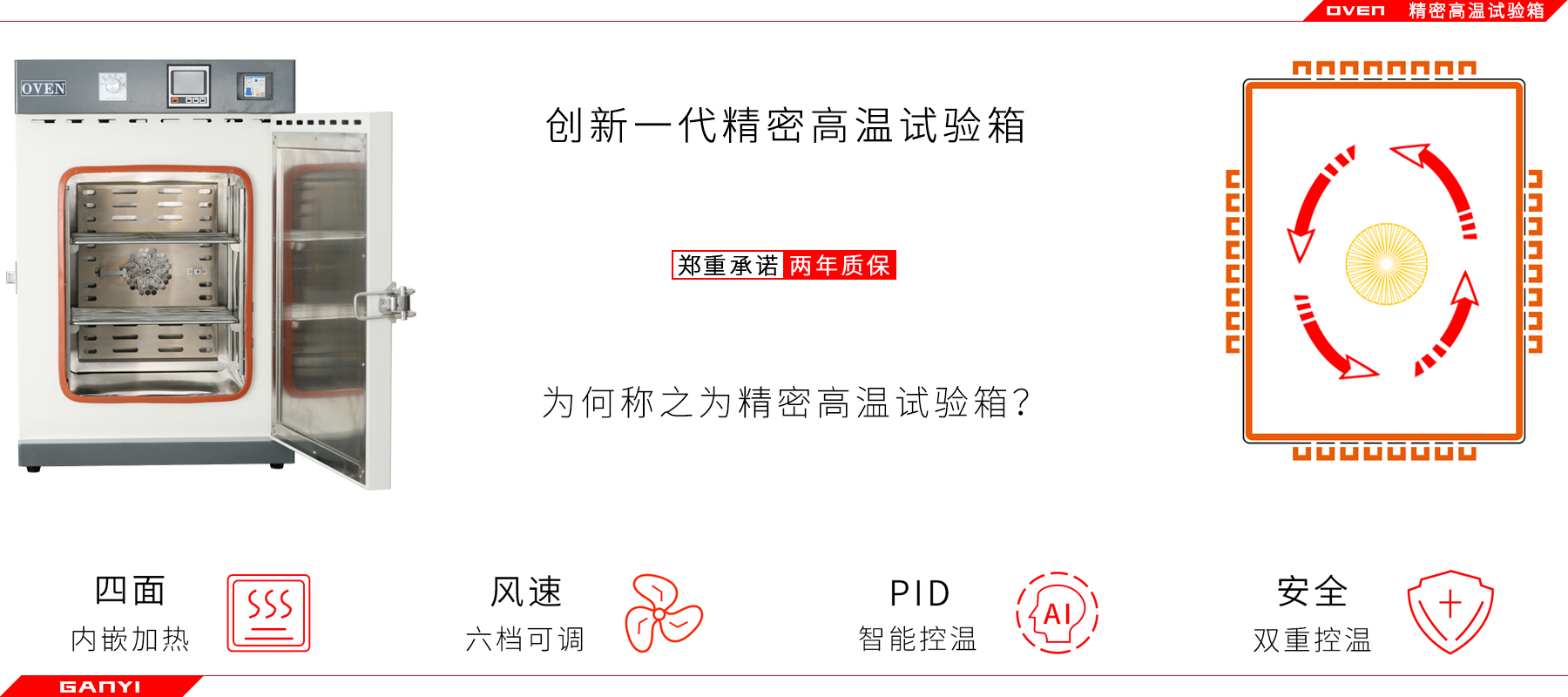 高溫試驗箱主要應(yīng)用于均勻性要求極高的實驗條件,本公司生產(chǎn)的這款高溫試驗箱在105℃的九點溫度測試均勻性是±0.8℃,可以滿足第三方檢測機構(gòu)檢定要求,配備風(fēng)速調(diào)節(jié)功能,可以根據(jù)樣品合適的蒸發(fā)速度調(diào)節(jié)適當?shù)臏囟群惋L(fēng)速。在安全方面,此款高溫試驗箱加裝有機械獨立控溫功能,一旦電子控溫元器件失靈機械控溫保證萬無一失。