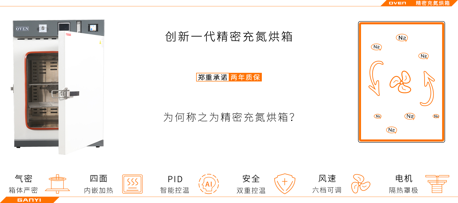 充氮烘箱主要應用于易氧化產(chǎn)品的烘干,通過充入氮氣這種惰性氣體保護樣品,另外適用一些可揮發(fā)性有機氣體樣品的干燥。這種情況就不能用常規(guī)的電熱鼓風干燥箱來烘干,而且不能采用市面上常規(guī)鼓風干燥箱改裝的充氮烘箱來使用,其一,常規(guī)鼓風干燥箱沒辦法密封,就會導致氧氣存在;其二,常規(guī)鼓風干燥箱加熱管在腔體內(nèi)部,一旦加熱后,有機性氣體揮發(fā)出來與加熱管接觸,會產(chǎn)生爆炸后果。因此本公司研發(fā)的充氮烘箱是一款嚴格意義上的密封烘箱,定制的進口硅膠密封件加之定制電機軸套解決了普通干燥箱密封問題;另外本公司加熱管采用四面外壁加熱,杜絕了爆炸風險,而且均勻性極大提高到±0.8℃。因此本公司生產(chǎn)的充氮烘箱特別適用于煤樣品烘干,電子元器件烘干,含樹脂類樣品烘干等。