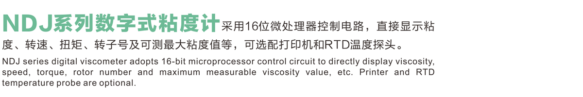 采用16位微處理器控制電路,直接顯示粘度、轉速、扭矩、轉子號及可測最大粘度值等,可選配打印機和RTD溫度探頭。