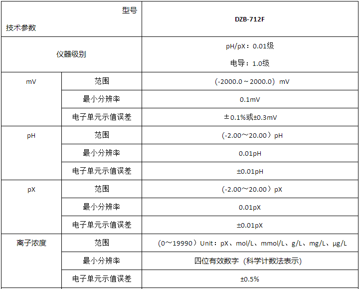 上海雷磁DZB-712F技術參數: