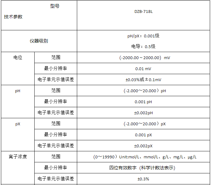 上海雷磁DZB-718L技術參數: