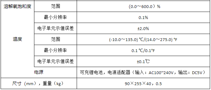 溶解氧測量功能: