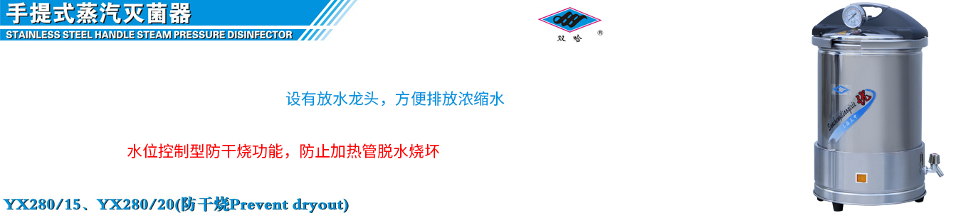 上海三申YX280/15手提式不銹鋼壓力蒸汽滅菌器(防干燒)技術參數