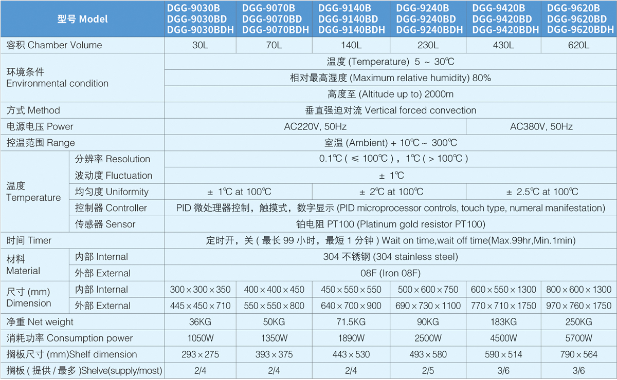 DGG-9030B、DGG-9070B、DGG-9140B、DGG-9240B、DGG-9420B、DGG-9620B