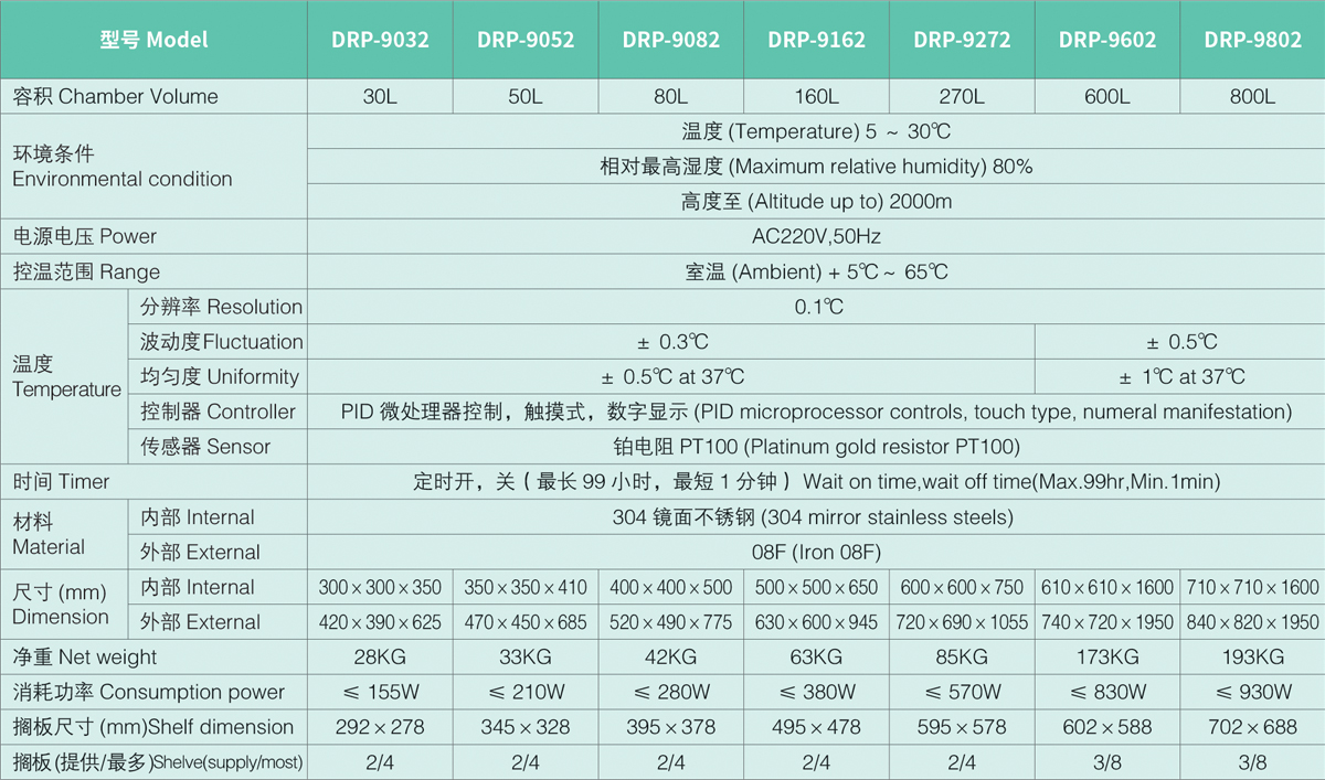 上海森信DRP-9802電熱恒溫培養箱技術參數