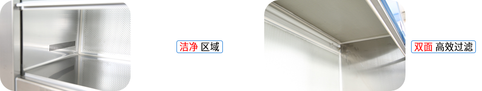 空氣經(jīng)頂/后部的初效空氣過濾器和低噪音離心式通風機壓入靜壓箱,經(jīng)高效空氣過濾器在上側(cè)部均勻吹出,形成高潔凈度的水