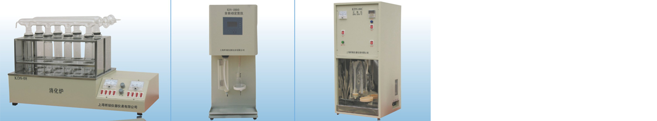 KDN系列定氮儀采用凱氏定氮原理工作,是在吸收國內外同類產品之優點,經公司科研人員的精心設計而成。該儀器性能穩定、操作方便。產品分為全自動與半自動二大系列。其加熱方式也分為二種,一種是采用國外常用的電熱管加熱方式,其優點是可適用于不同水源。另一種是采用電極型加熱方式,可適用于電導率相對低的水源,但具有加熱迅速,無需設置水位控制裝置等優點。 KDN系列消化爐采用井式電加熱裝置,并配有數顯式溫度控制裝置或電壓調節控溫裝置。使樣品在消化管內能取得最佳消化效果與最短消化時間。在消化過程中,可通過排污管和抽吸泵等裝置,將所產生的SO2等有害氣體與水冷卻并混合后排入下水道。可有效抑制有害氣體的外逸。 成套裝置可用于糧食、飼料、食品、乳制品、飲料、土肥、醫藥及其他農副產品的蛋白質含量測定。