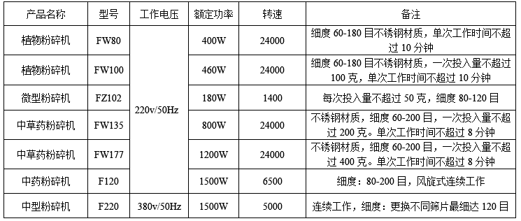備注:不銹鋼材質(zhì),細(xì)度60-200目不銹鋼材質(zhì),一次投入量不超過200g,單次工作時間不超過8min