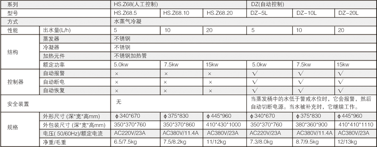 北京永光明HS.Z68.20不銹鋼電熱蒸餾水器技術參數