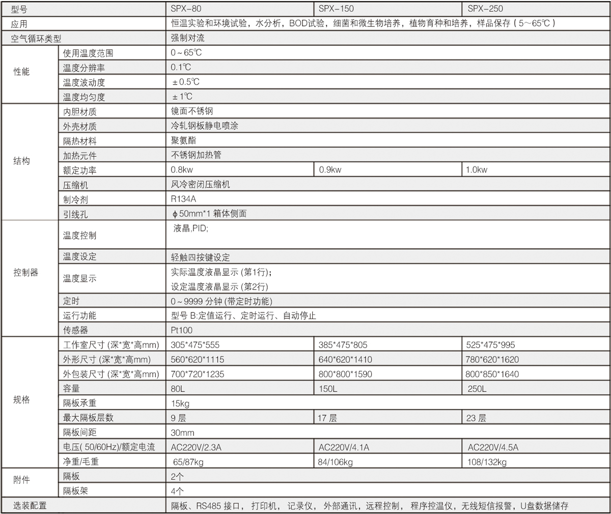選配裝置:隔板,RS485接口,打印機,記錄儀,外部通訊,遠程控制,程序控溫儀,無線短信報警,U盤數據儲存