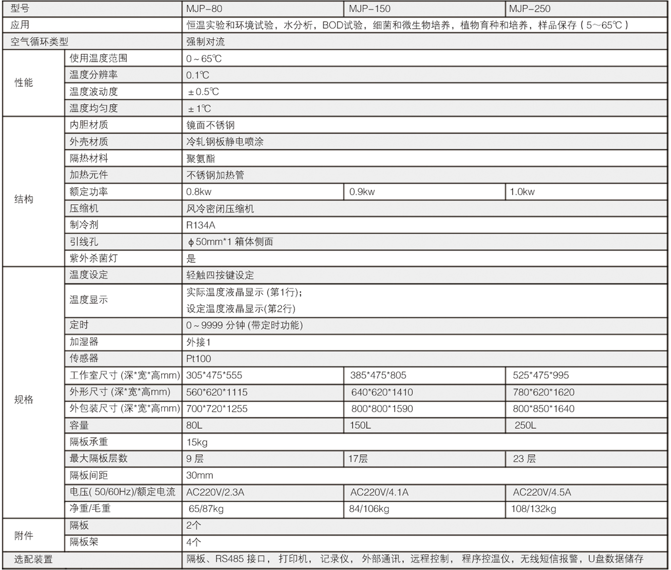 選配裝置:隔板,RS485接口,打印機,記錄儀,外部通訊,遠程控制,程序控溫儀,無線短信報警,U盤數據儲存