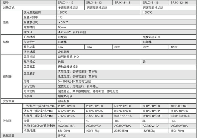 外殼采用優(yōu)質(zhì)冷軋鋼板制作,表面噴涂工藝處理。 獨(dú)特的爐門(mén)設(shè)計(jì),使開(kāi)門(mén)操作安全簡(jiǎn)便,確保爐內(nèi)高溫?zé)釟獠煌饴?爐膛由高溫耐火材料燒結(jié)而成,爐膛與外殼之間是保溫材料填充。 以硅碳棒或硅鉬棒為加熱元件,與控制器配套使用可對(duì)溫度進(jìn)行測(cè)量、顯示、控制,使?fàn)t內(nèi)溫度保恒定。 選購(gòu)件:智能型程序溫度控制器。